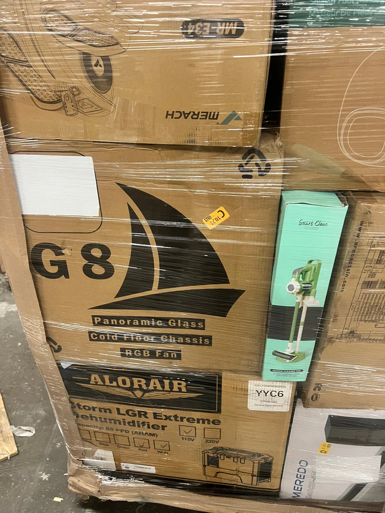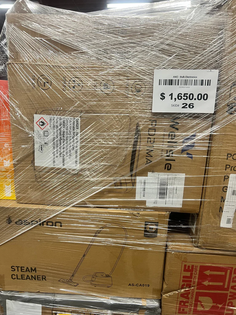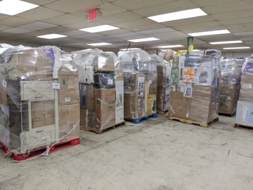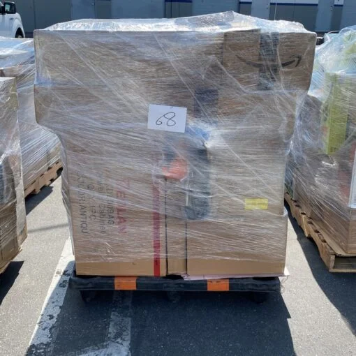 Cada pallet contiene 600 productos procedentes de la red logística de Amazon, incluyendo devoluciones de clientes, excedentes de almacén, retiradas de estantería y liquidaciones de fin de línea.