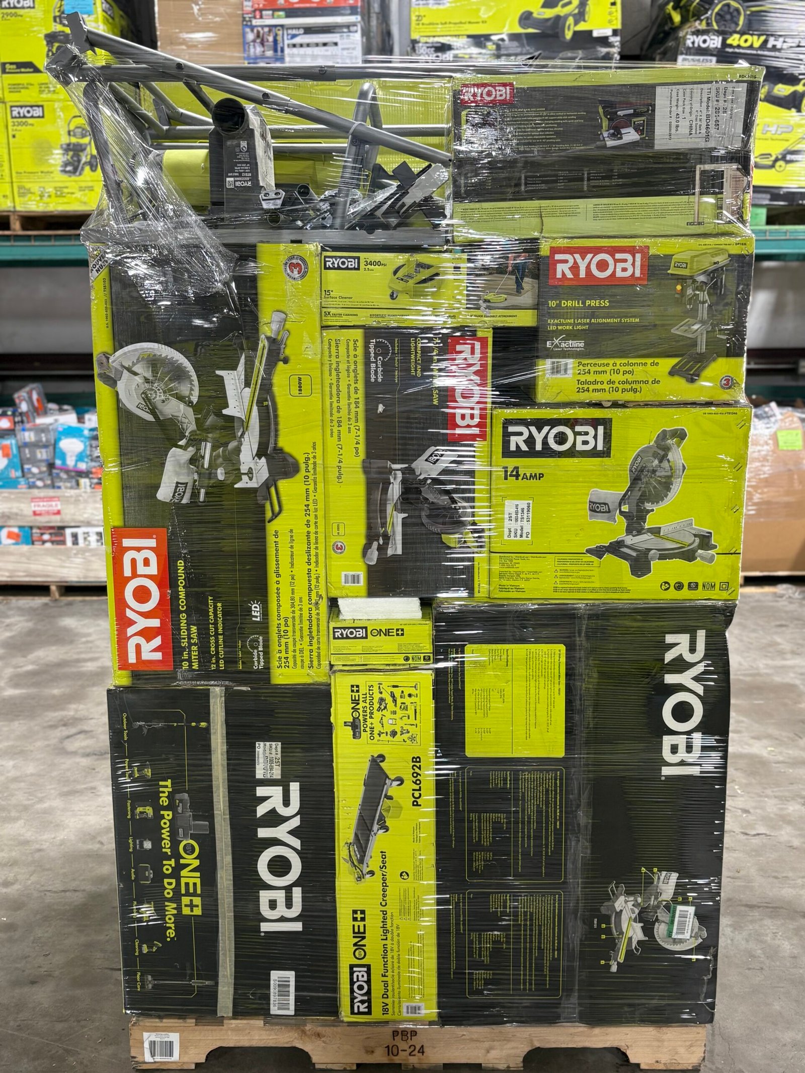 Contenido de los pallets de Ryobi power tools