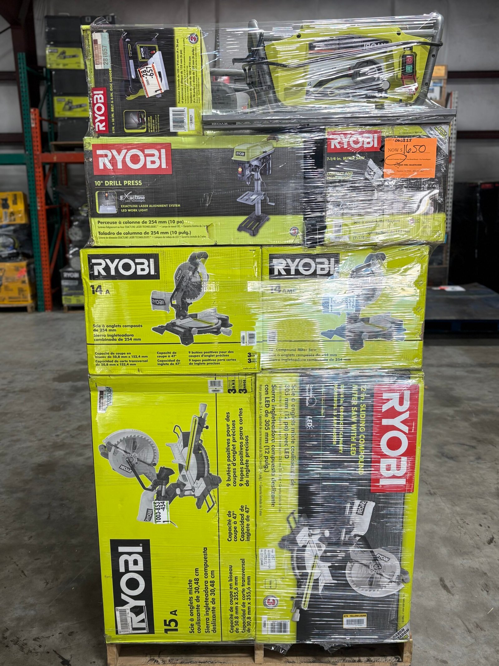 El pallet de Ryobi de Big Brand Depot llegó muy bien empaquetado y se agotó rápidamente.